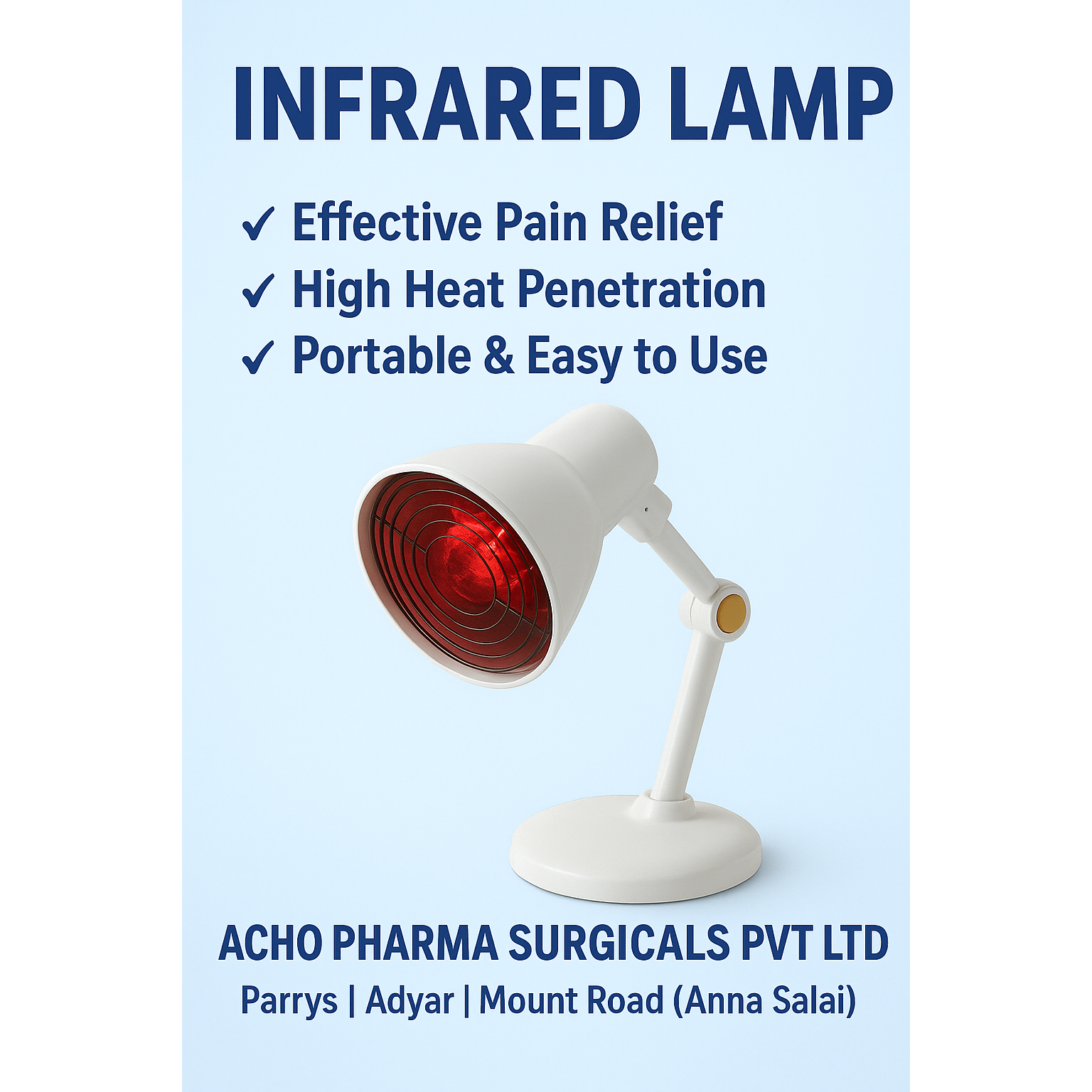 Beurer Infrared Lamp Set – Available in Chennai Beurer Infrared Lamp Set available at Acho Pharma Surgicals Pvt Ltd – advanced heat therapy device for pain relief, muscle relaxation, and respiratory care. 🛒 Popular Beurer Infrared Lamps Beurer IL 11 Infrared Lamp •Infrared therapy lamp with high reviews, suitable for pain relief. Beurer IL 21 Infrared Lamp •Effective infrared heat lamp, highly rated for wellness. Beurer IL 35 Infrared Lamp •Premium infrared lamp for targeted heat therapy at home. Beurer IL 50 Infrared Heat Lamp •Powerful infrared heat lamp with excellent reviews for pain management. 🔹 Key Features: Deep penetrating infrared heat therapy Helps relieve muscle pain, joint pain & stiffness Useful for cold, sinus & respiratory relief Adjustable angle for targeted treatment Safe use with overheating protection Timer with auto switch-off (select models) Medical-grade certified device Ideal for home physiotherapy use 👉 Infrared lamps provide soothing heat that improves blood circulation and helps reduce pain & muscle tension 📍 Available at: Acho Pharma Surgicals Pvt Ltd 📌 Triplicane & Adyar – Chennai 📞 Call / WhatsApp: 6374750906 | 6380589740 🚚 Home Delivery Available 📍 Areas We Serve: Chennai | Mount Road | Anna Salai | Triplicane | Royapettah | Mylapore | Nungambakkam | Egmore | Kilpauk | Parrys | Broadway | George Town | Mannadi | Washermanpet | Royapuram | Tondiarpet | Anna Nagar | Ambattur | Avadi | Porur | Poonamallee | Adyar | Besant Nagar | Thiruvanmiyur | Velachery | Guindy | OMR | ECR | Tambaram | Pallavaram | Chromepet | Near Me | Home Delivery | Tamil Nadu Beurer Infrared Lamp | Infrared Heat Lamp | IR Lamp Therapy | Pain Relief Lamp | Muscle Pain Relief Device | Heat Therapy Lamp | Physiotherapy Lamp | Infrared Lamp Chennai | Infrared Lamp Near Me | Medical Heat Lamp | Triplicane | Adyar | Mount Road | Anna Salai | Royapettah | Mylapore | Nungambakkam | Egmore | Anna Nagar | Ambattur | Porur | Velachery | OMR | ECR | Tambaram | Pallavaram | Chromepet | Near Me | Home Delivery | Tamil Nadu | GH Supply | Best Rate