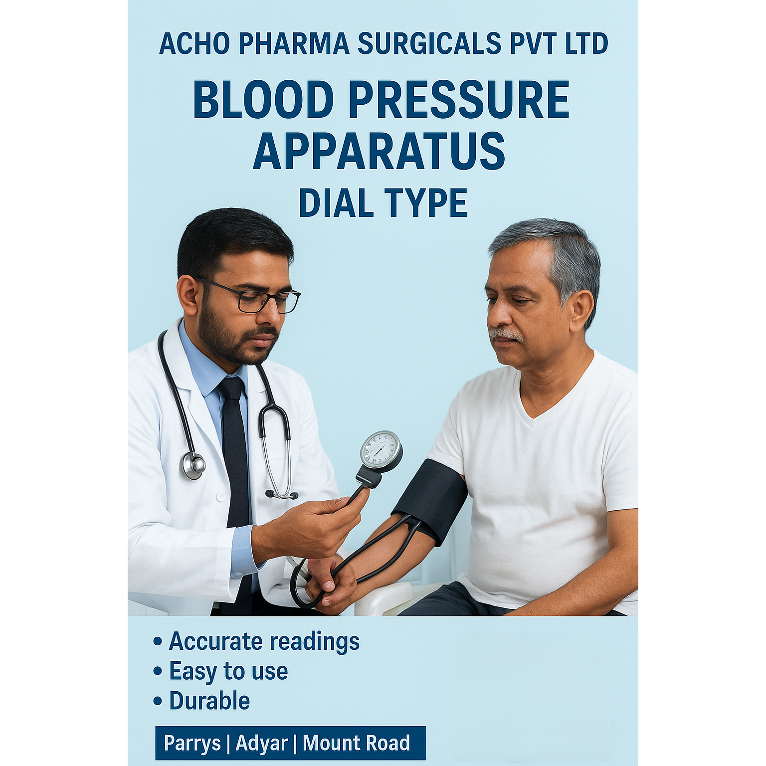 Blood Pressure Monitor – Accurate & Easy to Use Maintain your health with a reliable digital blood pressure monitor, designed for quick, accurate, and comfortable BP measurement at home. ✨ Key Features Accurate Readings – Measures systolic, diastolic & pulse rate precisely Large Display Screen – Clear and easy to read One-Touch Operation – Simple for all age groups Memory Function – Stores previous readings Comfortable Arm Cuff – Fits most adult arm sizes Battery or Adapter Use – Convenient for home or travel 👍 Ideal For Elderly individuals Hypertension patients Home health checkup Clinics & medical stores 📍 Available At: Acho Pharma Surgicals Pvt Ltd 5/3, Quaide Millath Road, Triplicane, Chennai – 600005 (Opp. Adam Market Bus Stop, Near Mount Road) 🕙 Timing: 10 AM – 9 PM Serving: Mount Road | Triplicane | Egmore | Royapettah | Chepauk | Omandurar Hospital.