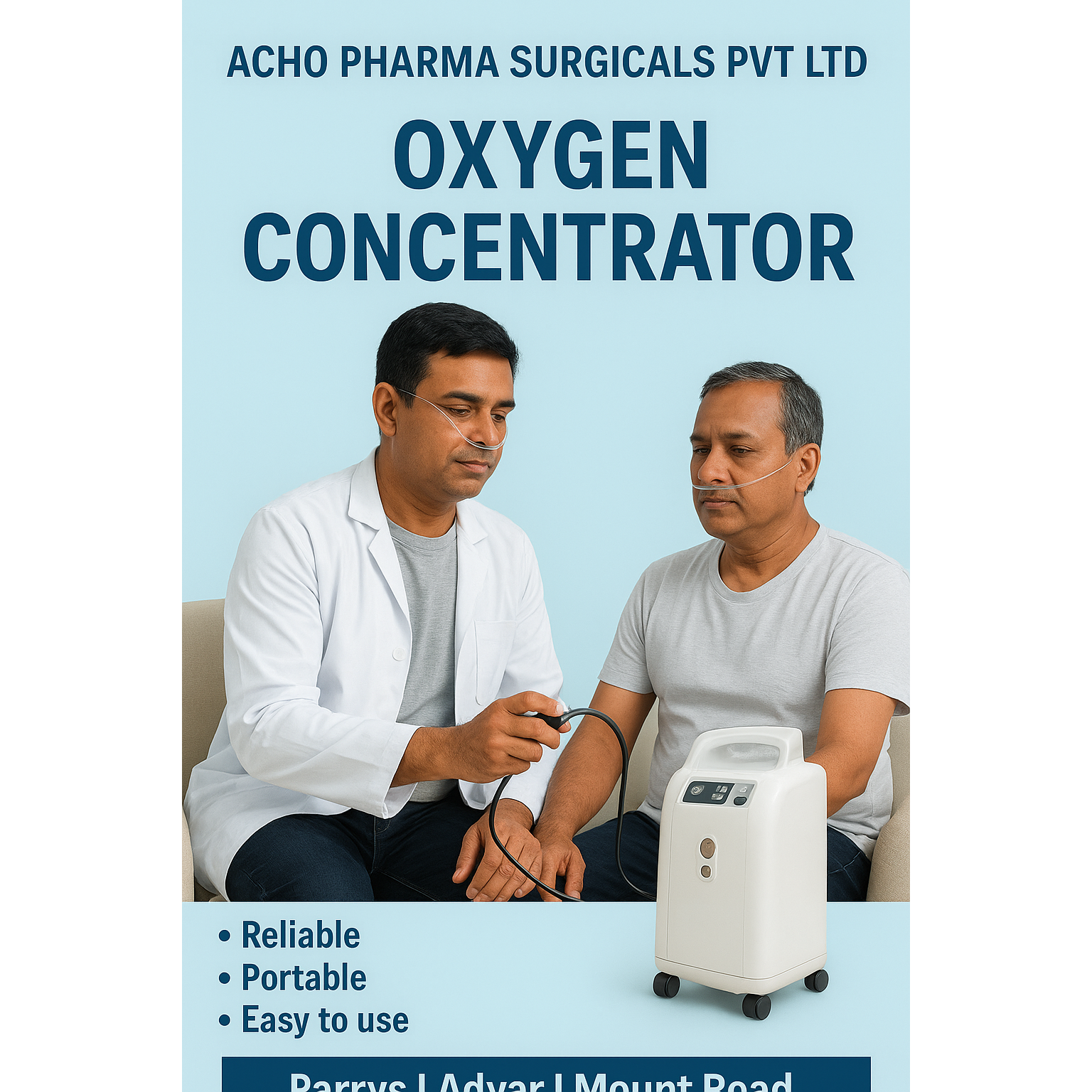 Oxygen Concentrator – Home & Hospital Use | Chennai Looking for a reliable Oxygen Concentrator in Chennai? Acho Pharma Surgicals supplies high-quality oxygen concentrators suitable for home care, clinics, emergency use, and hospitals. ✅ Key Features ✔️ Continuous flow oxygen (1–5 LPM / 1–10 LPM models) ✔️ Produces 90–96% pure medical-grade oxygen ✔️ Low noise operation ✔️ LED display with alarms ✔️ Easy-to-use controls ✔️ Built-in humidifier bottle ✔️ Energy efficient and durable ✔️ Suitable for long-duration home oxygen therapy ⭐ Best For COPD Asthma Post-COVID recovery Respiratory disorders Elderly patients Home oxygen support 🔍 SEO Keywords oxygen concentrator Chennai, portable oxygen concentrator, home oxygen machine Chennai, buy oxygen concentrator near me, medical oxygen device Chennai, oxygen therapy equipment. 📍 Available At: Acho Pharma Surgicals Pvt Ltd 5/3, Quaide Millath Road, Triplicane, Chennai – 600005 (Opp. Adam Market Bus Stop, Near Mount Road) 🕙 Timing: 10 AM – 9 PM Serving: Mount Road | Triplicane | Egmore | Royapettah | Chepauk | Omandurar Hospital | Greams Road | Thiruvanmaiyur | Besant Nagar | Adyar.