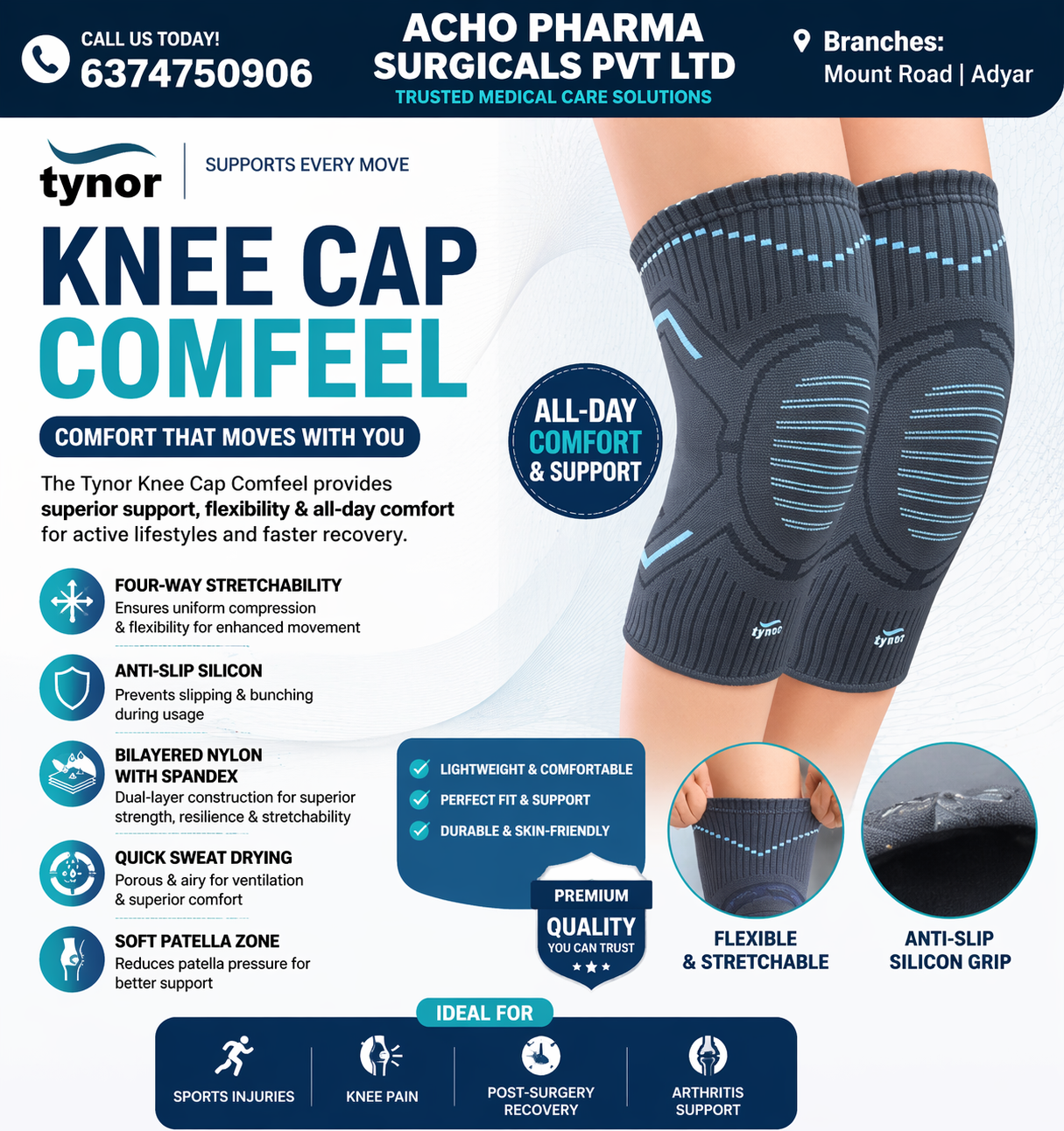 🏥 Boost 360 Content (Your Store) 🦵 Tynor Knee Cap Comfeel – Available in Chennai Tynor Knee Cap Comfeel available at Acho Pharma Surgicals Pvt Ltd – comfortable knee support designed for pain relief and daily mobility. 🔹 Key Features: Mild compression for knee support Soft cotton inner layer for comfort Four-way stretch for perfect fit Provides warmth & reduces stiffness Lightweight & breathable design Easy slip-on application Ideal for arthritis, knee pain & injury Best quality at Best Rate 📍 Acho Pharma Surgicals Pvt Ltd 📌 Triplicane & Adyar – Chennai 📞 Call / WhatsApp: 6374750906 | 6380589740 🚚 Home Delivery Available Tynor Knee Cap Comfeel | Knee Cap Support | Knee Support Sleeve | Knee Pain Support | Arthritis Knee Cap | Compression Knee Support | Knee Cap in Chennai | Knee Support Near Me | Medical Knee Support | Triplicane | Adyar | Mount Road | Anna Salai | Royapettah | Mylapore | Nungambakkam | Egmore | Anna Nagar | Ambattur | Porur | Velachery | OMR | ECR | Tambaram | Pallavaram | Chromepet | Near Me | Home Delivery | Tamil Nadu | GH Supply | Best Rate