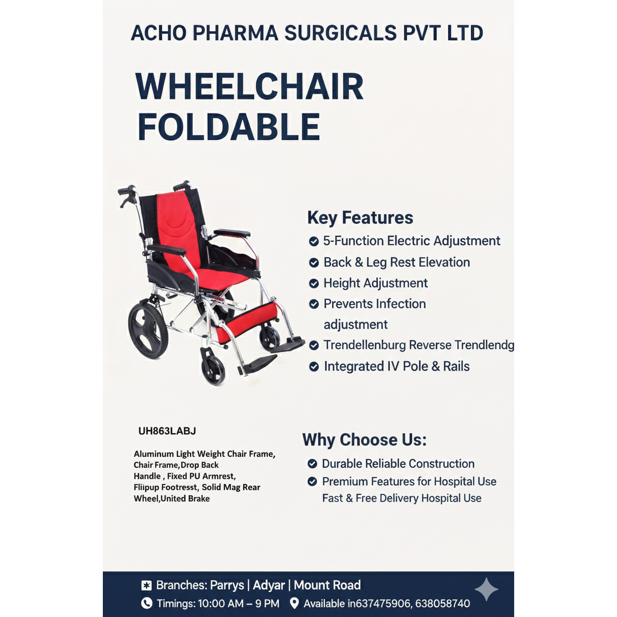 ♿ Wheelchair – Easy Mobility & Comfortable Support A wheelchair provides safe, smooth mobility for seniors, patients, and anyone with limited movement. Designed for comfort and convenience, it helps users move independently or with assistance. ✨ Key Features Strong Steel Frame – Durable and long-lasting Comfortable Seat & Backrest – Soft padding for extended use Foldable Design – Easy to carry and store Smooth-Rolling Wheels – For effortless movement Safety Brakes – Added control and stability Footrest Support – Comfortable leg positioning 👍 Ideal For Post-surgery patients Elderly individuals Mobility-impaired persons Home, hospital, and travel use 📍 Available At: Acho Pharma Surgicals Pvt Ltd 5/3, Quaide Millath Road, Triplicane, Chennai – 600005 (Opp. Adam Market Bus Stop, Near Mount Road) 🕙 Timing: 10 AM – 9 PM Serving: Mount Road | Triplicane | Egmore | Royapettah | Chepauk | Omandurar Hospital.